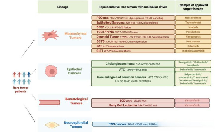 图:按组织谱系分类的生僻肿瘤:精选病例、分子特征及已获批的靶向治愈